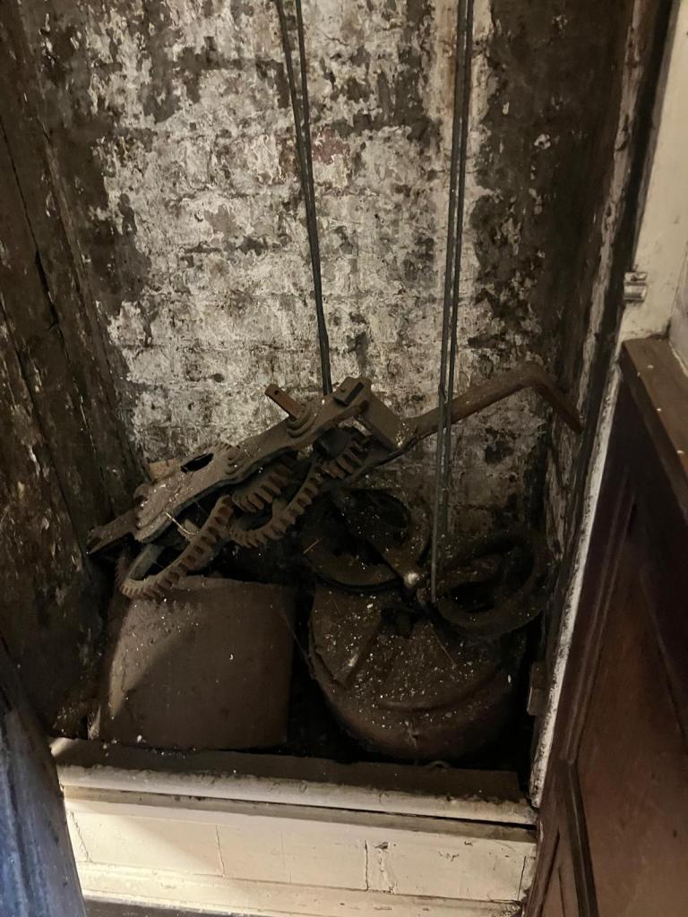 I first had a look at the weight shaft for the chime and strike weights. You can tell these haven’t been wound in ages.