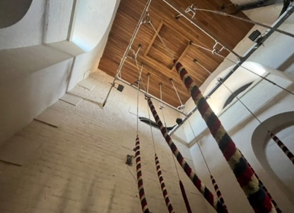 Clambering up this tiny stone staircase, we emerge into the bell ringing chamber.