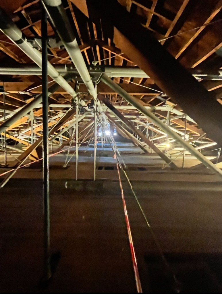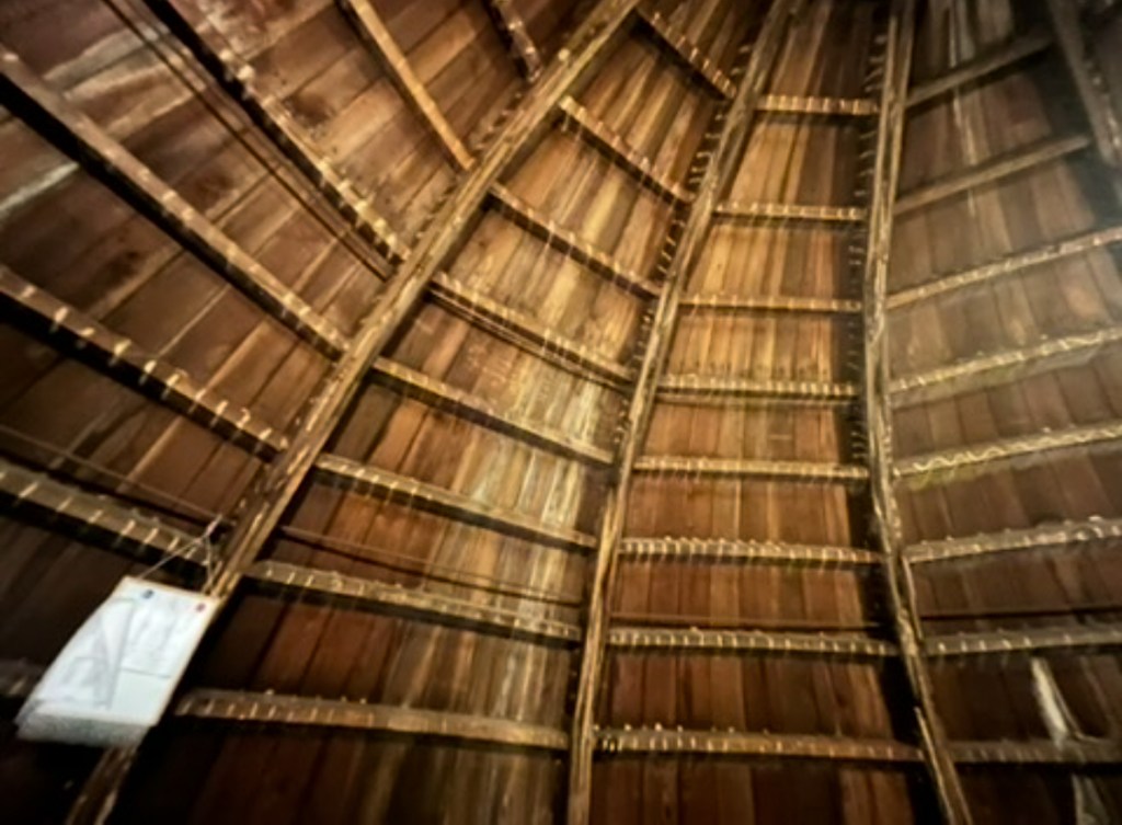 Turning to the left there’s another door that leads into the roof space just above the main part of the church. The metal structural beams are a later addition to help support it.