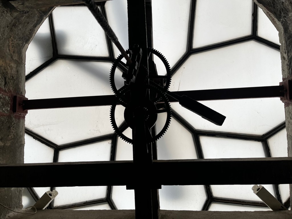 I hadn’t really realised how close we were to the belfry and so it gave us a bit of a fright when the hammer dropped! I always find it very satisfying to hear the governors of a turret clock bring themselves to a stop after chiming, as well as the racks being lifted.