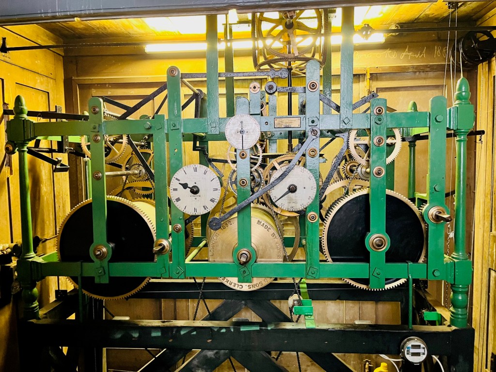 The second stop of our journey is the bell chamber. Rather than all the bells being contained in one room, the bells that are responsible for sounding the hours and quarters are instead contained in their own room.